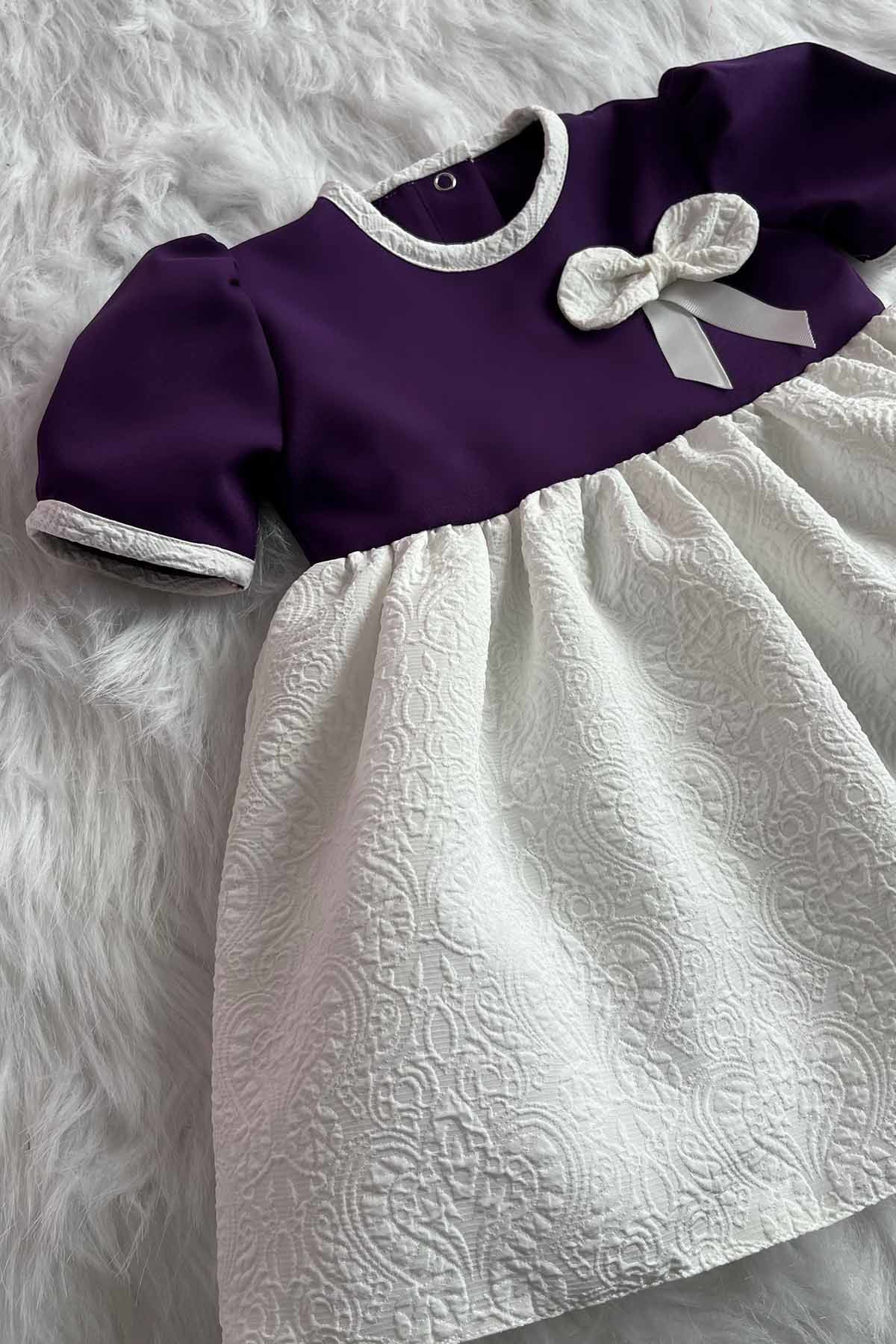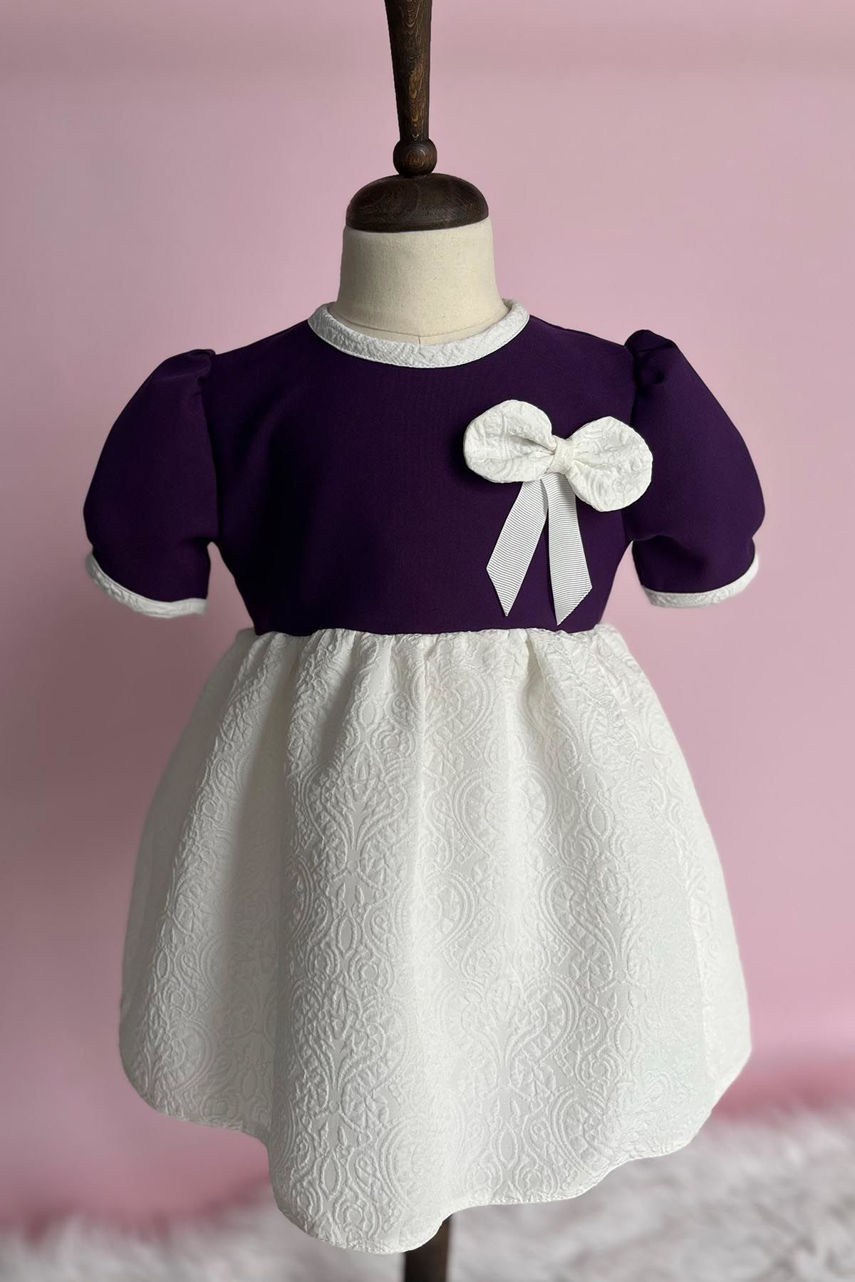 Mor Beyaz Kız Çocuk Bebek Tasarım Elbise