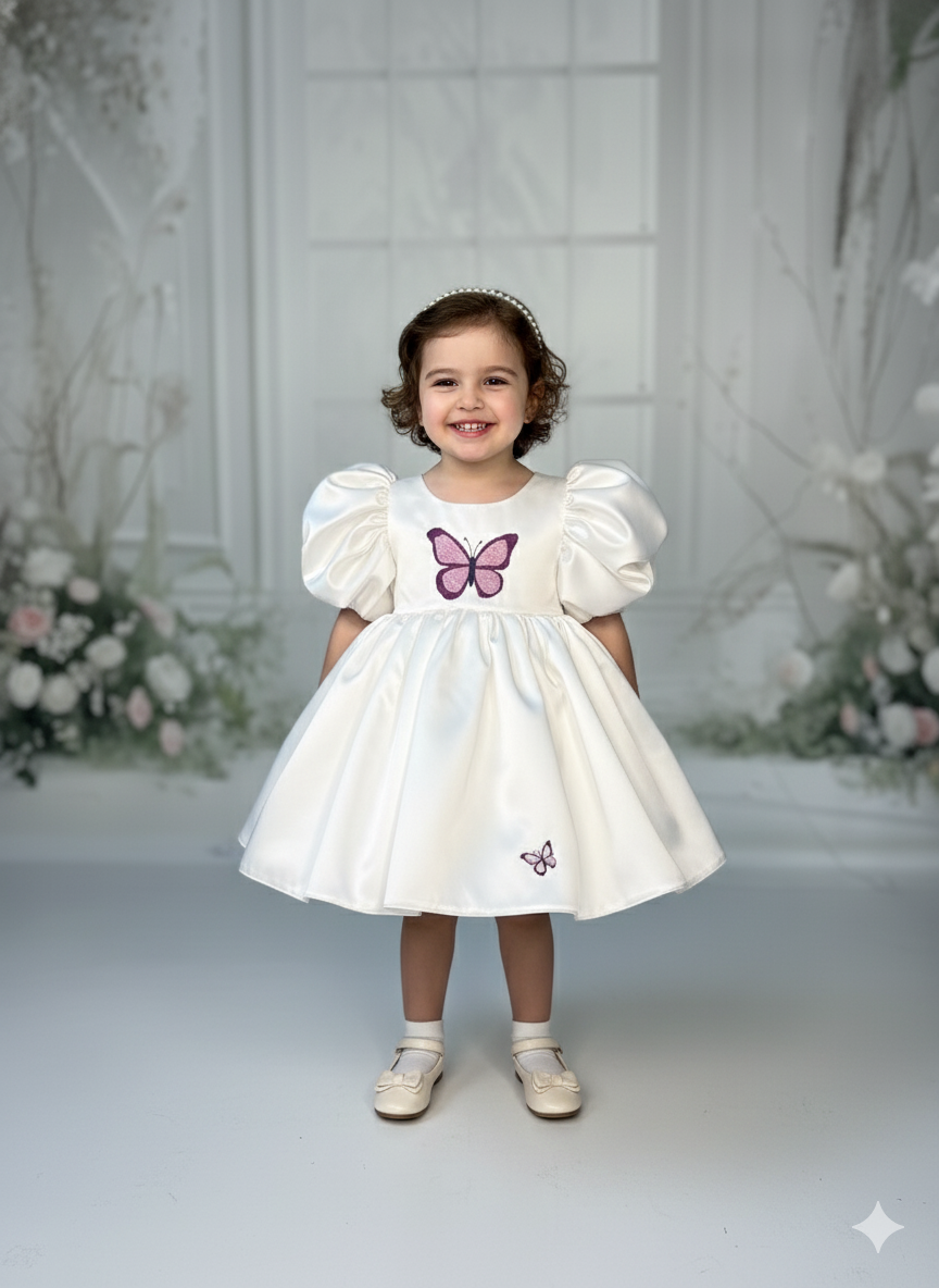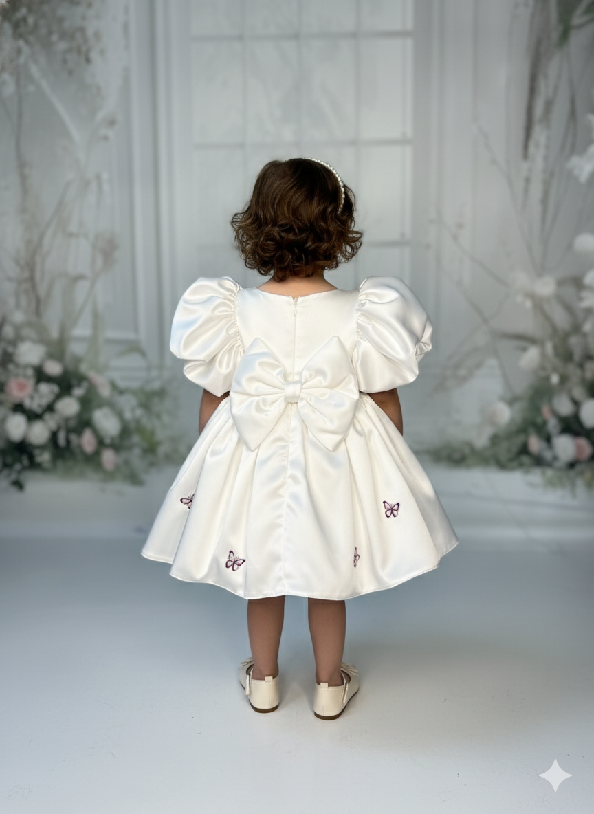 Saten Kırık Beyaz Nakışlı Tasarım Elbise ✨