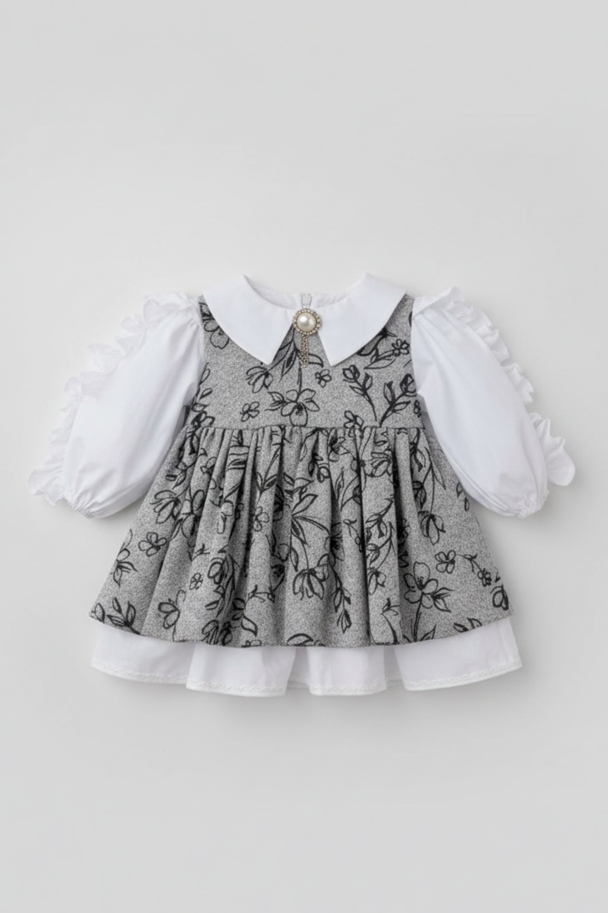 Unser aus 100 % Baumwolle gefüttertes Kleid im koreanischen Stil bietet Ihnen mit seinen gerafften Ärmeln und der Brosche einen coolen Look.