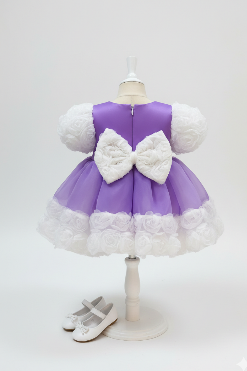 Dieses bezaubernde Ballkleid für Babymädchen ist wunderschön mit einer hübschen Rosenapplikation bestickt, die Farbe in die Garderobe Ihrer Kleinen bringt. Der weiche Stoff in einem hellen Mauve-Ton bietet ganztägigen Komfort und ist somit perfekt zum Spielen oder für ein Nickerchen geeignet. Dank des Reißverschlusses können Ihre Babys das Kleid problemlos anziehen. Mit seinem bezaubernden Design und den praktischen Eigenschaften ist dieses Kleid eine süße Ergänzung für die Kollektion jedes Baby-Mädchens.