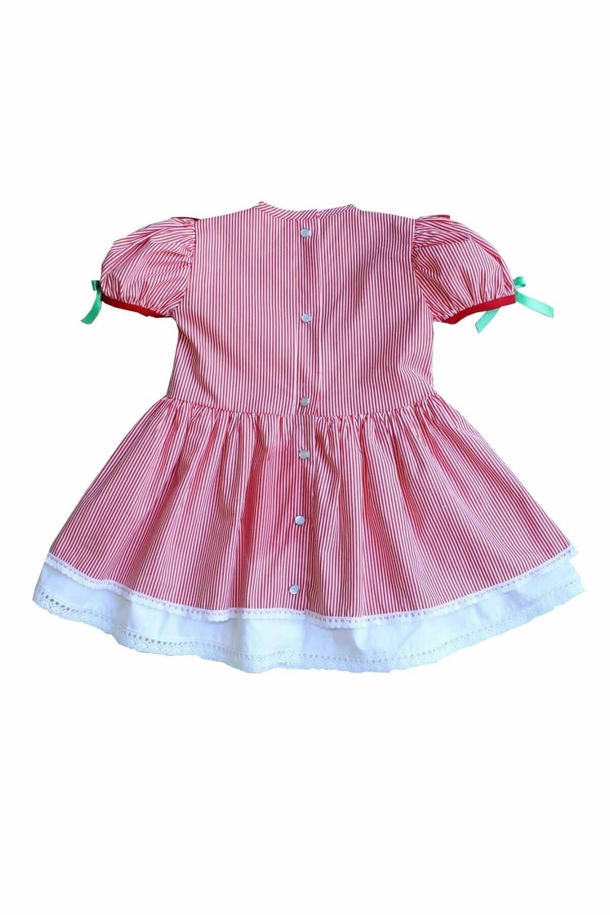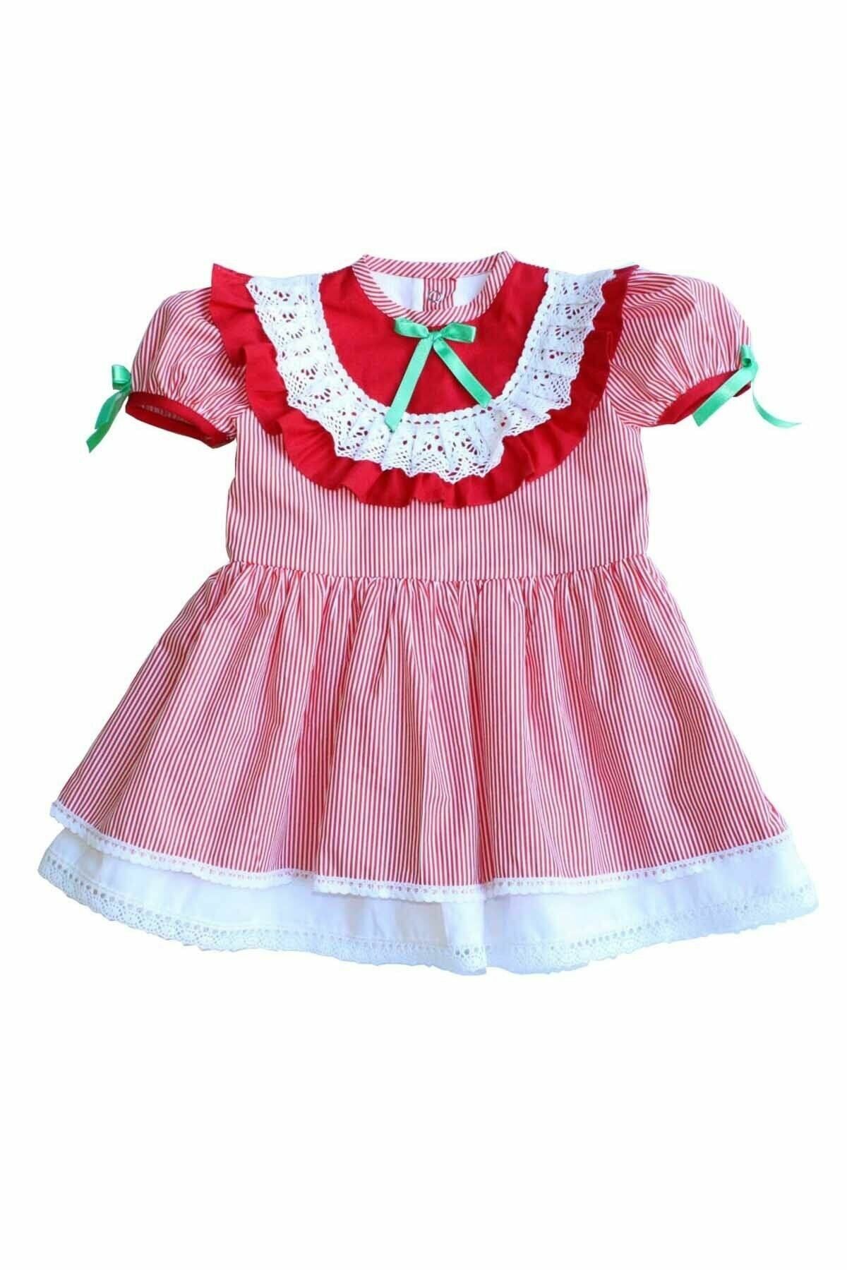 Rot gestreiftes Babykleid für Mädchen mit Rüschen und Schleifendetail
