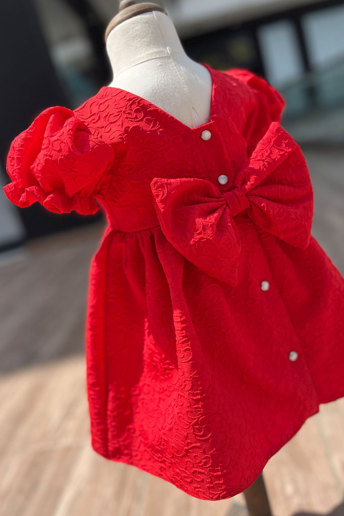 Dieses Kleid wurde entworfen, um mit seinem eleganten Schleifendetail die Magie von Geburtstagen einzufangen. Geraffte Ärmel und Prägungen verleihen einen stylischen Touch. Das Kleid ist perfekt für Geburtstagsfeiern, Familientreffen und besondere Anlässe zu jeder Jahreszeit.