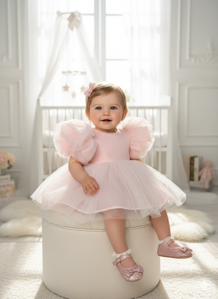 Minik prenseslerin en özel anlarına eşlik edecek, zarafet ve konforun buluştuğu çok özel bir tasarım! Işıltılı simli organze kumaşı ve arkadaki devasa fiyonk detayıyla hem modern hem de masalsı bir görünüm sunuyor.