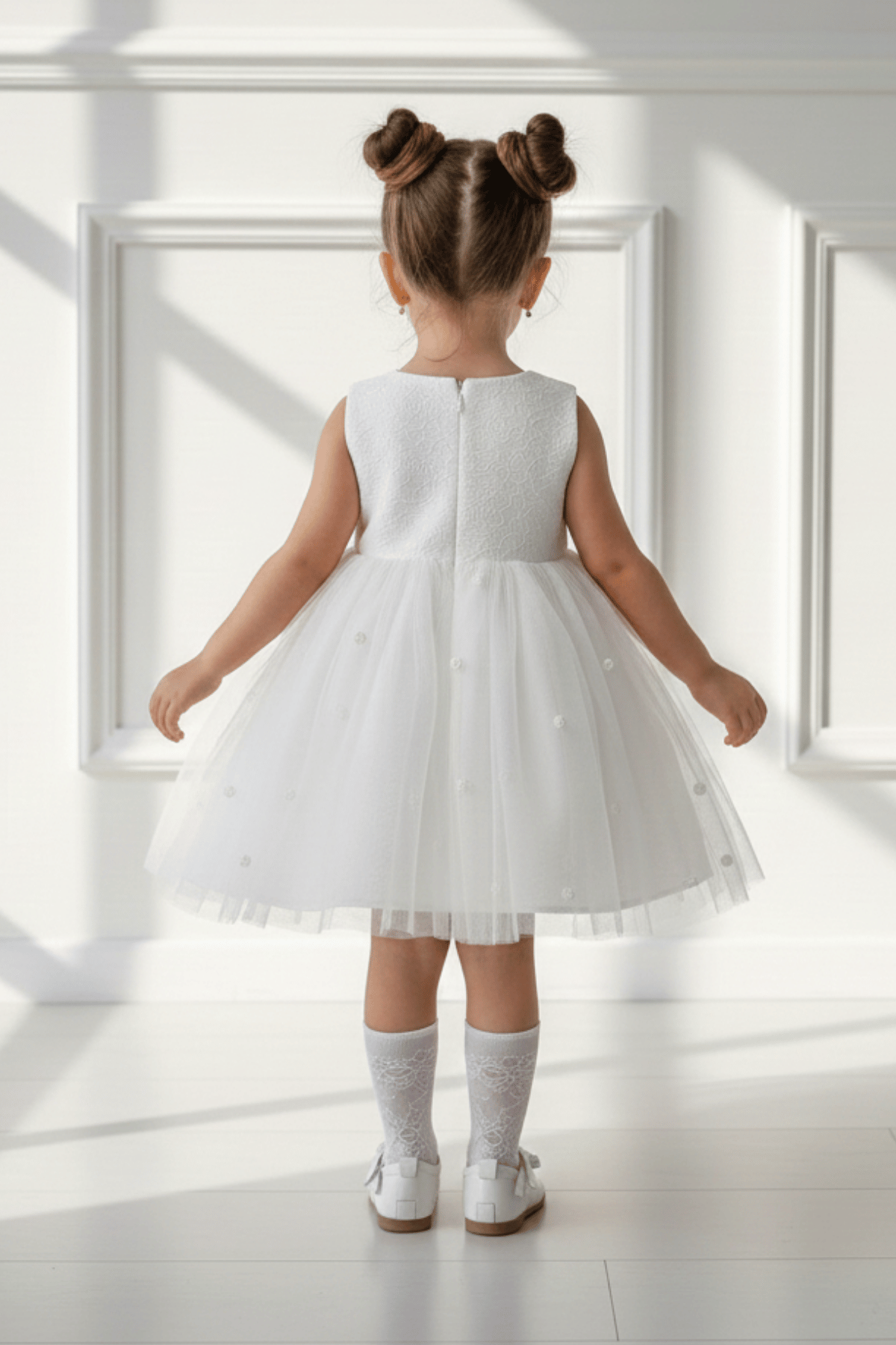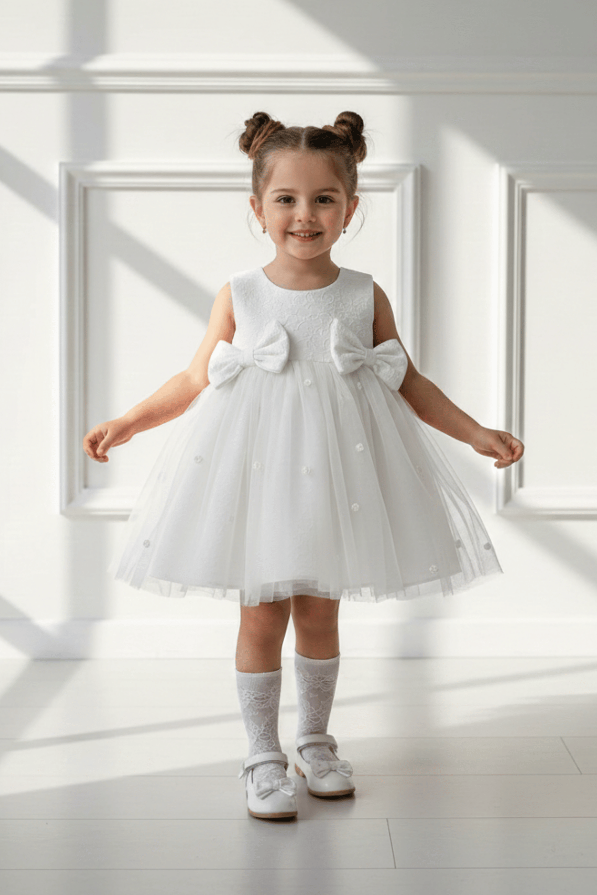 7 yaşa kadar beden seçenekleri mevcuttur. Beyazın saflığı ve şıklığını taşıyan bu özel tasarım, anılarınızda iz bırakacak!