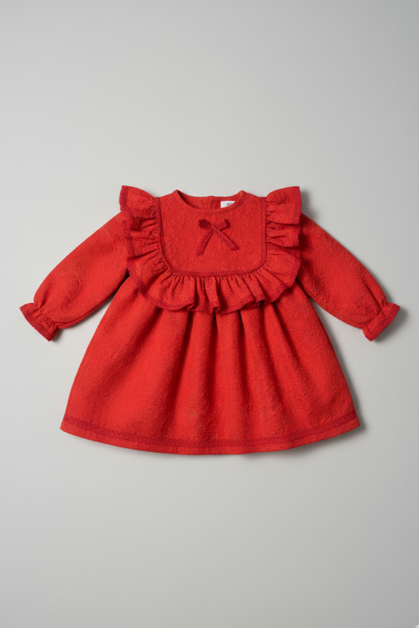 Vintage Esintili Kabartma Dokulu Kız Çocuk Bebek Elbisesi
