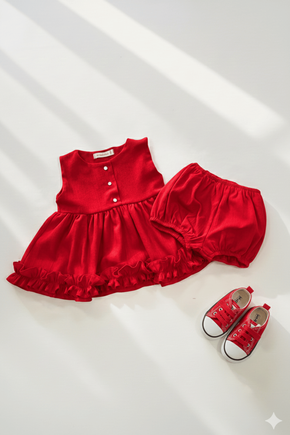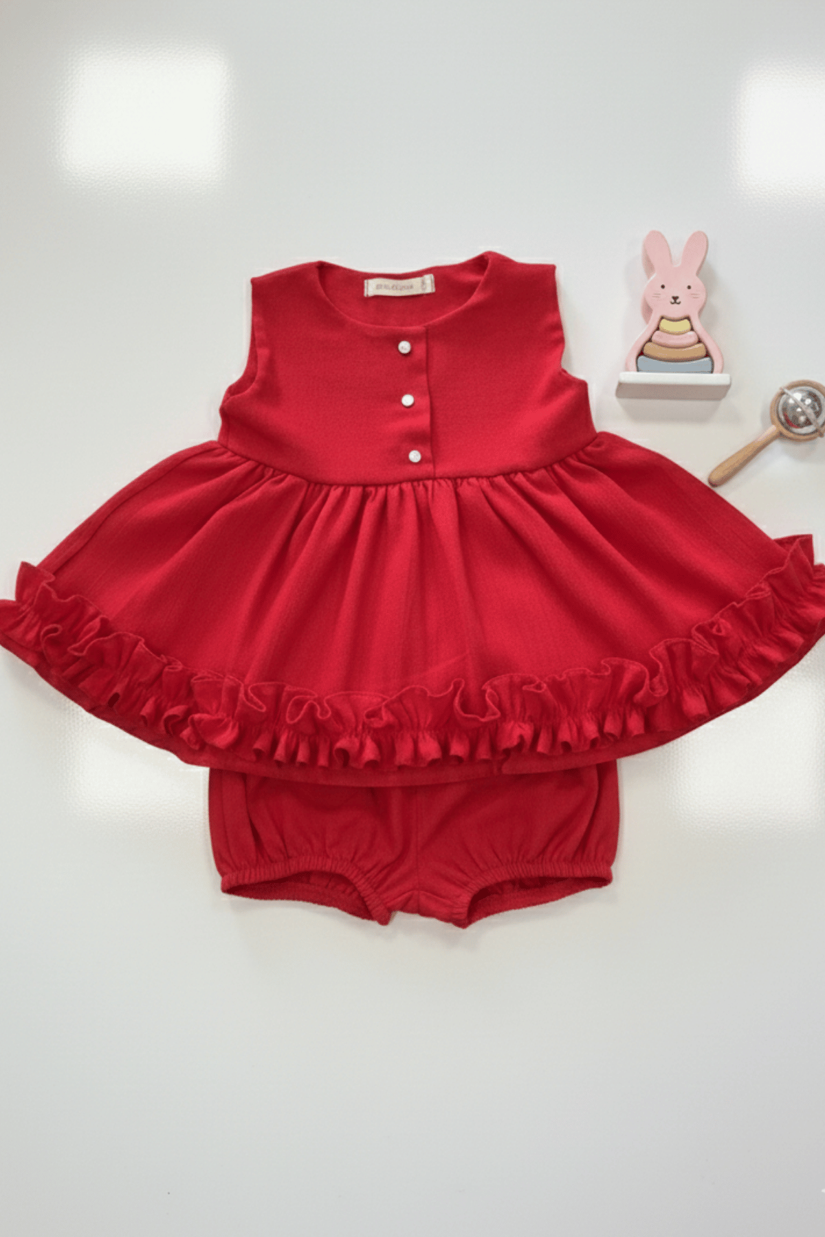 Kırmızı Şile Bezi Pamuklu Alt Üst Kız Çocuk Bebek Kolsuz Takım Kırmızı Bürümcük Pamuklu Alt Üst Kız Çocuk Bebek Takım 559