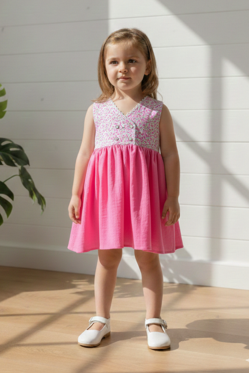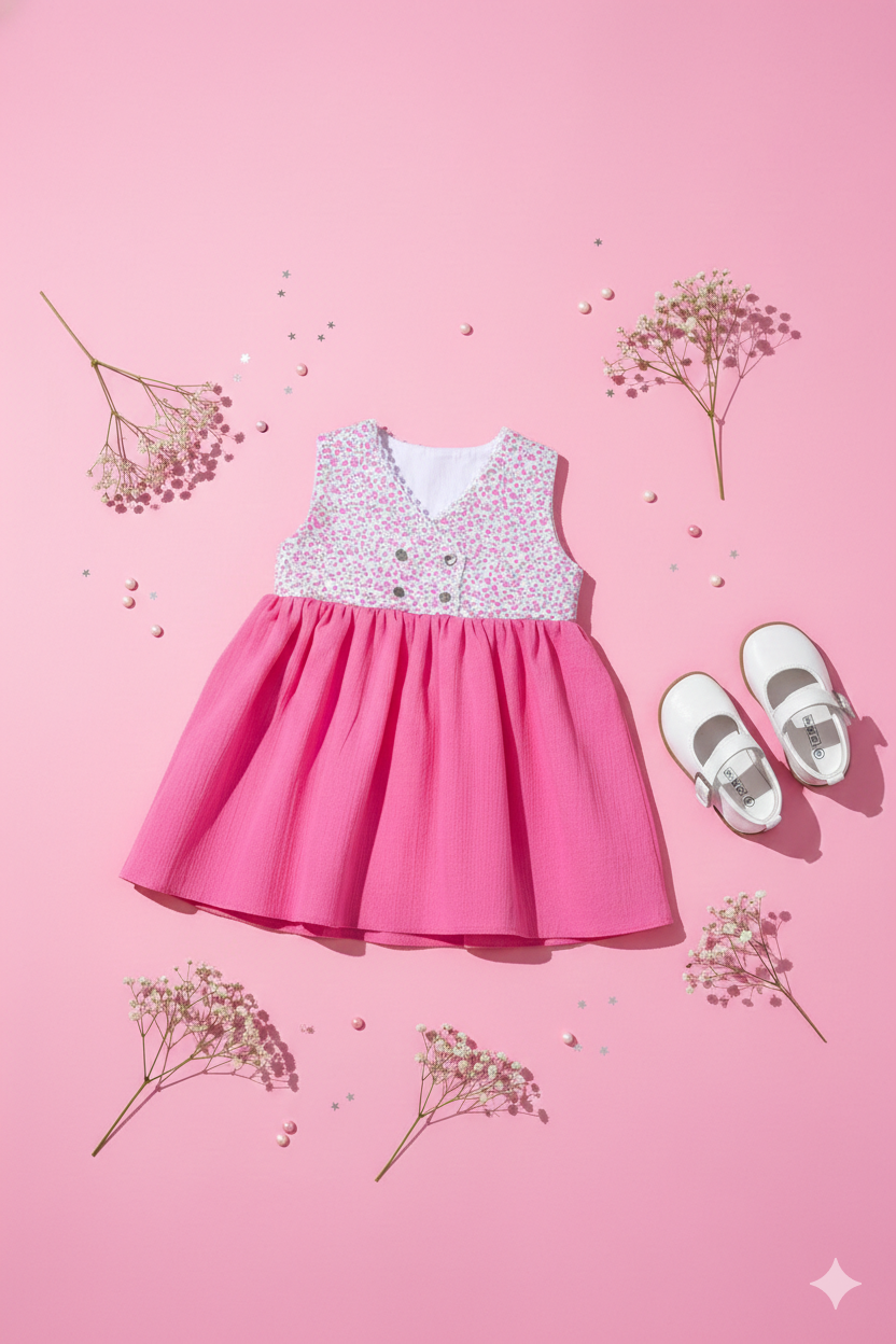 Our summer dress, made of 100% organic cotton material with tiny flower patterns and lace decoration, provides comfortable and safe use in hot weather and in between seasons.