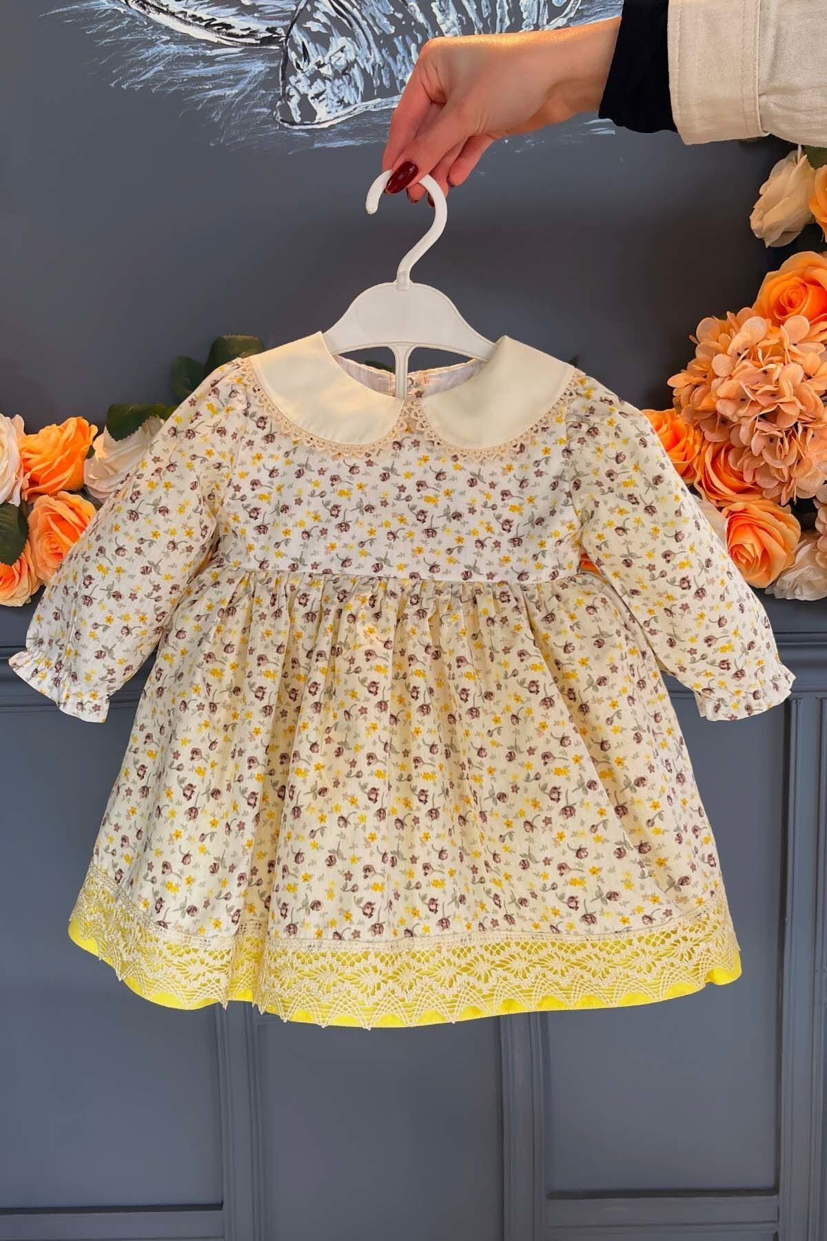 Bebe Yaka Dantel Detaylı Çiçekli Kız Çocuk Bebek Pamuklu Elbise ( 3 renk)