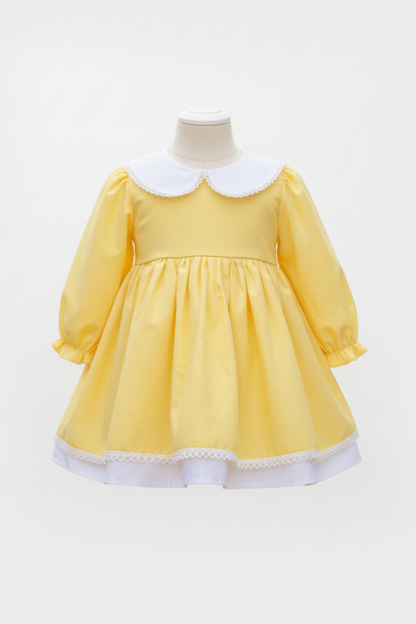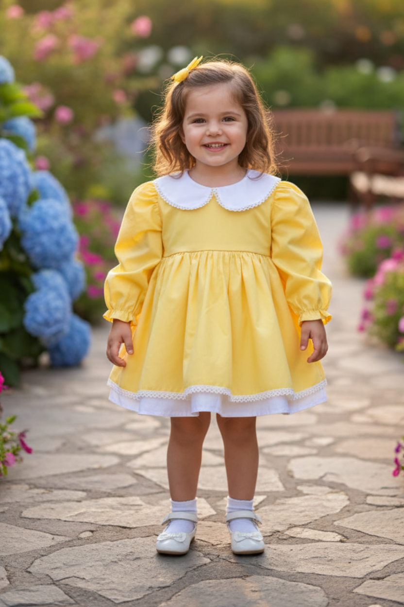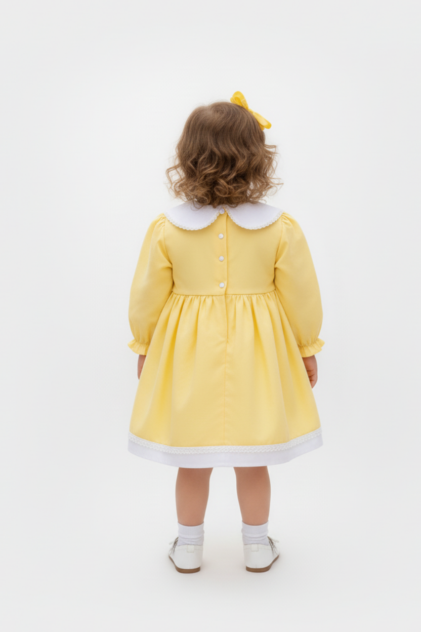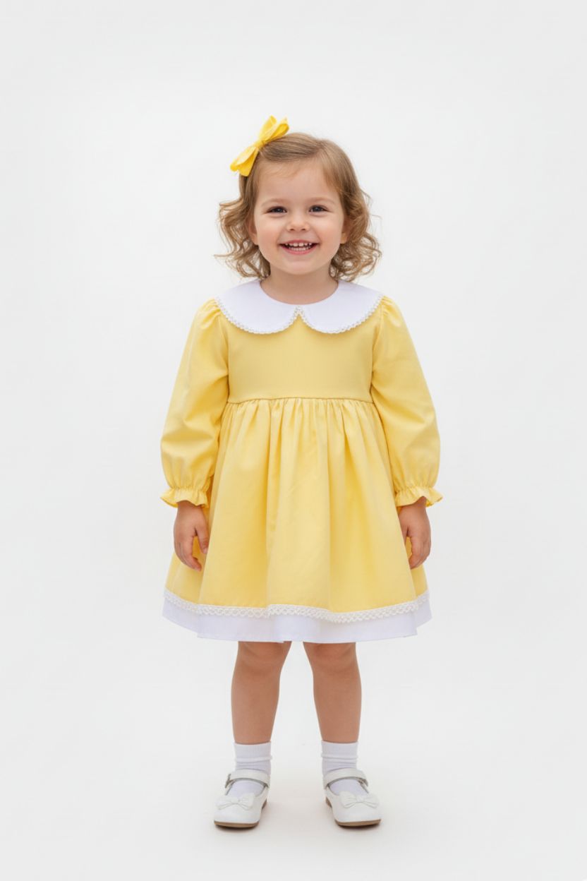 Güneş Gibi İçinizi Isıtacak: Sarı Poplin, Bebe Yaka Uzun Kol Elbise
