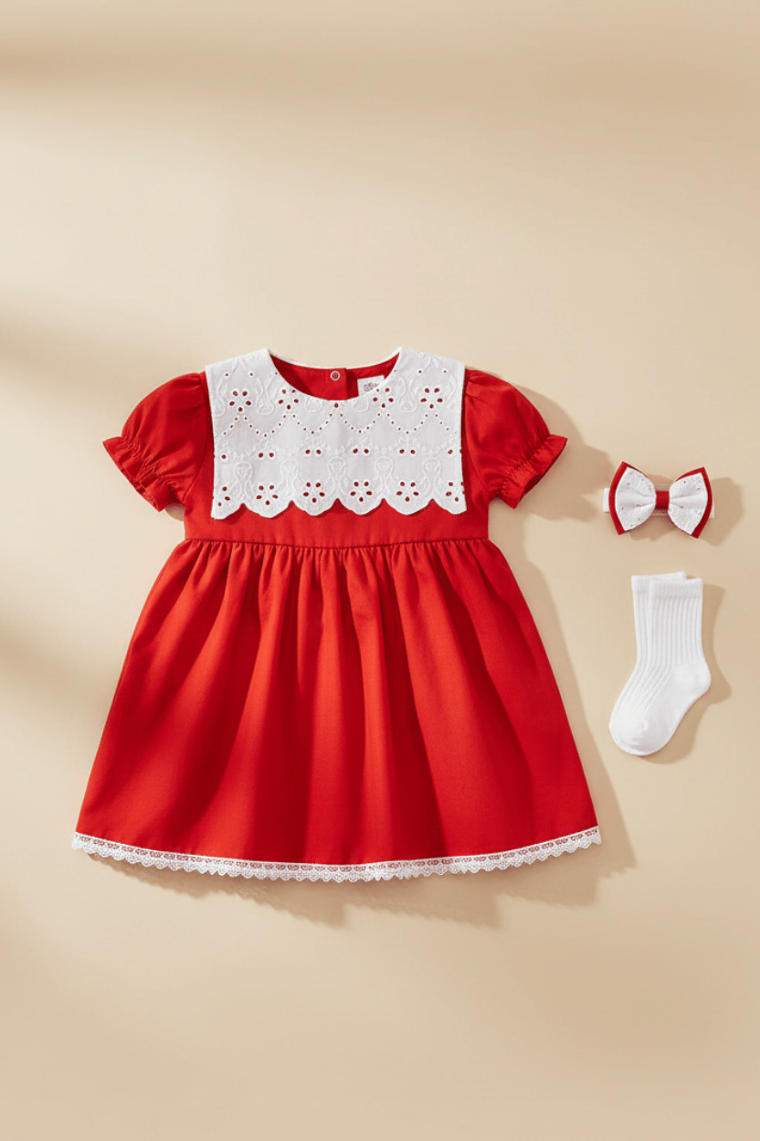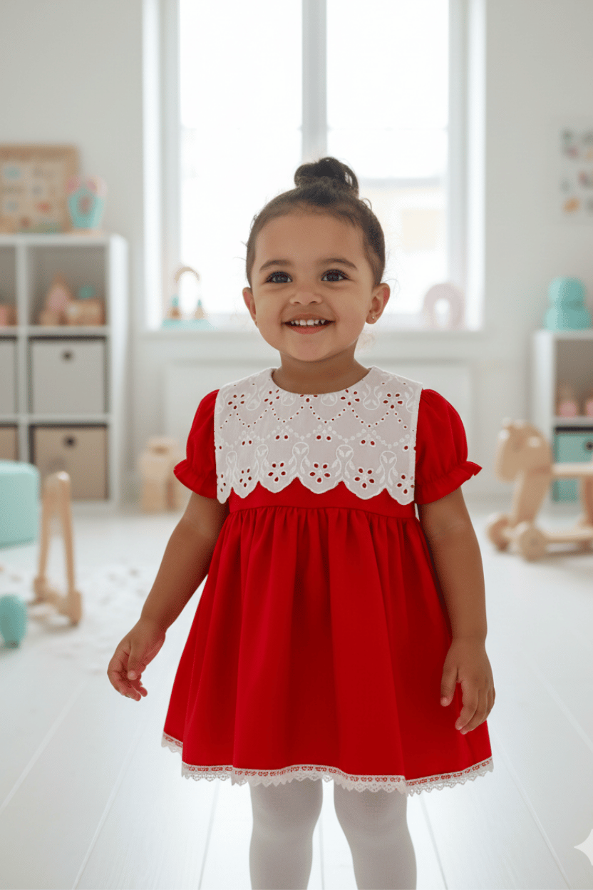 Zarafetin Klasik Dokunuşu: Kırmızı Fisto ve Dantel Detaylı Çocuk Elbisesi