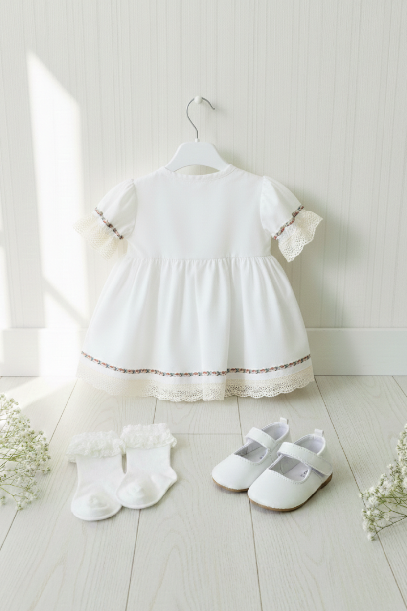 Zarafetin Rengi: Krem Poplin Dantelli Bebek Elbisesi