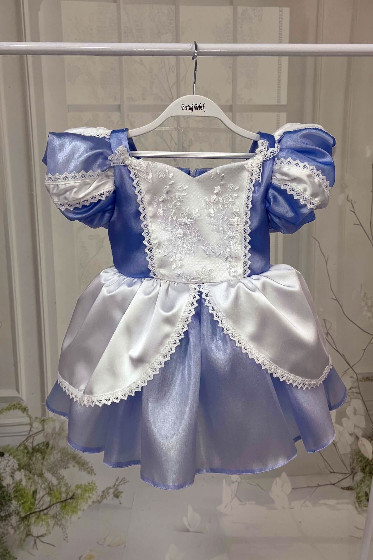 Dantel Süslemeleri ile Organze ve Saten Kumaşın Buluştuğu Parlak Cindirella Abiye Modelimiz Miniklerinizin Konsept Doğum Günü Partilerinde Çok Sevdiği Elbisesi Olacak.