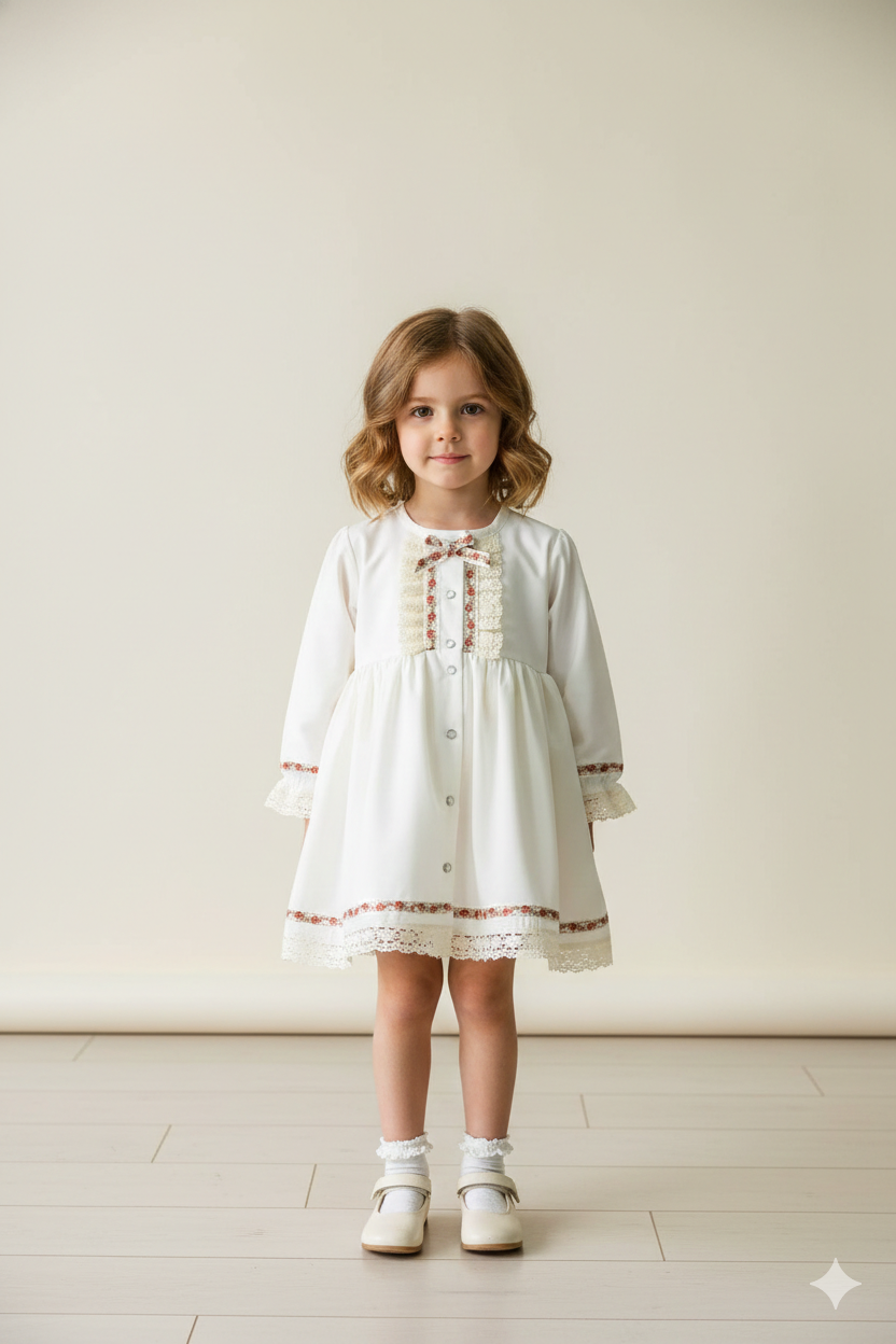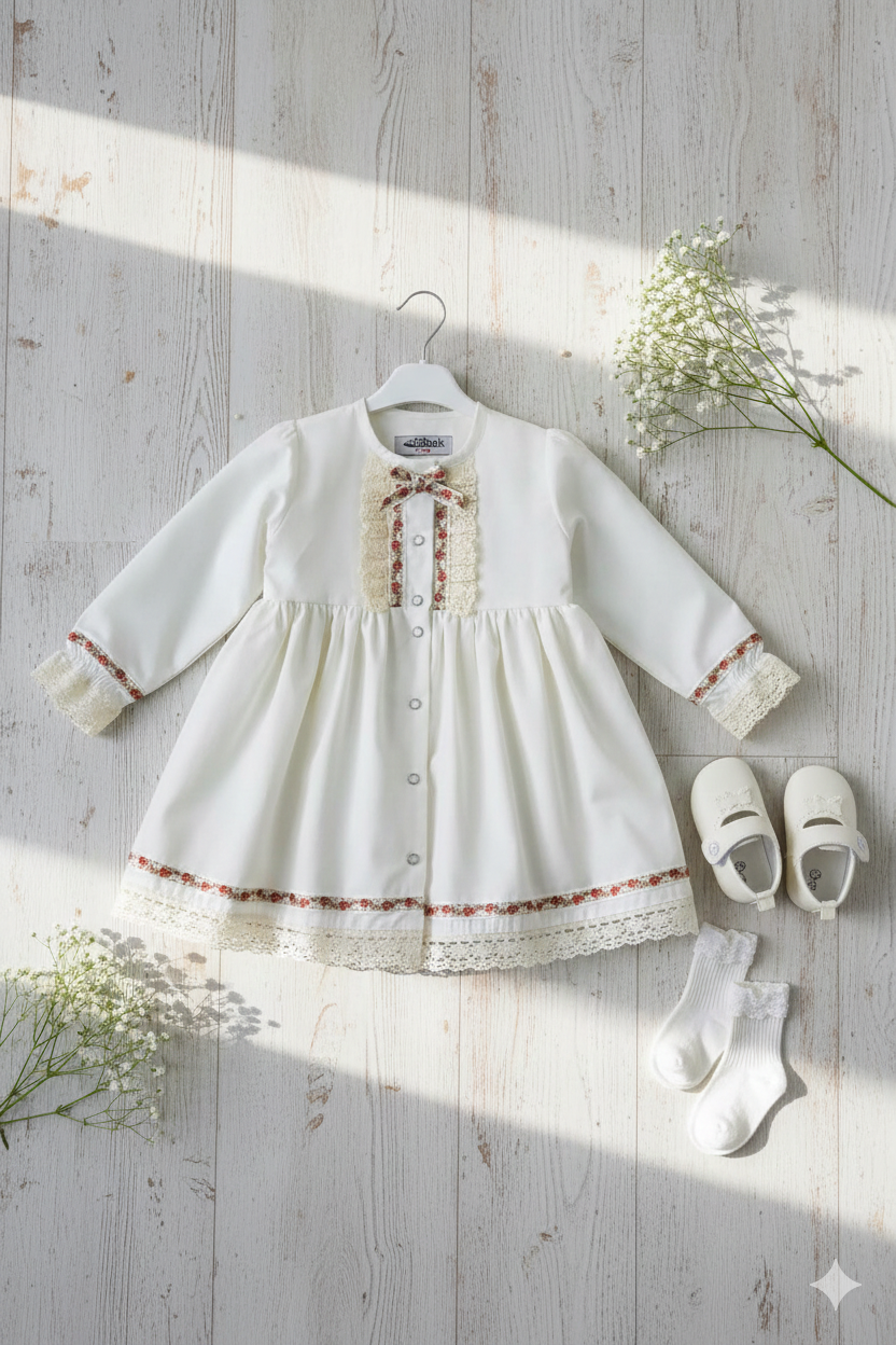 Zarafetin Pamuksu Dokunuşu: Ekru Dantel ve Kurdele Detaylı Bebek&Çocuk Elbisesi