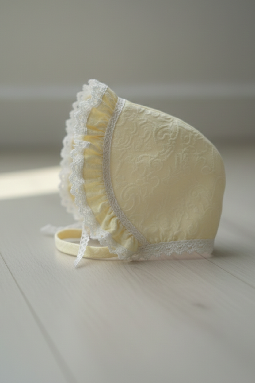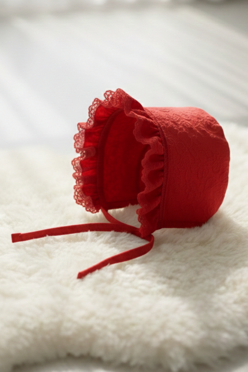 Miniklerin stilini tamamlayan en zarif aksesuarla tanışın! Yeni koleksiyonumuzun bir parçası olan bu özel bone, dokulu kumaşı ve vintage esintili dantel detaylarıyla hem günlük kullanımda hem de özel anlarda fark yaratır. Bebeğinizin ve çocuğunuzun hassas cildine uyumlu soft dokusuyla konforu estetikle birleştiriyor.