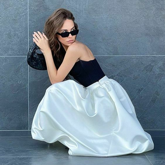 Kadın Balon Uzun Kırık Beyaz Saten Düğün Nişan Nikah Etek Maksi Boy Balloon Satin Off-White Skirt