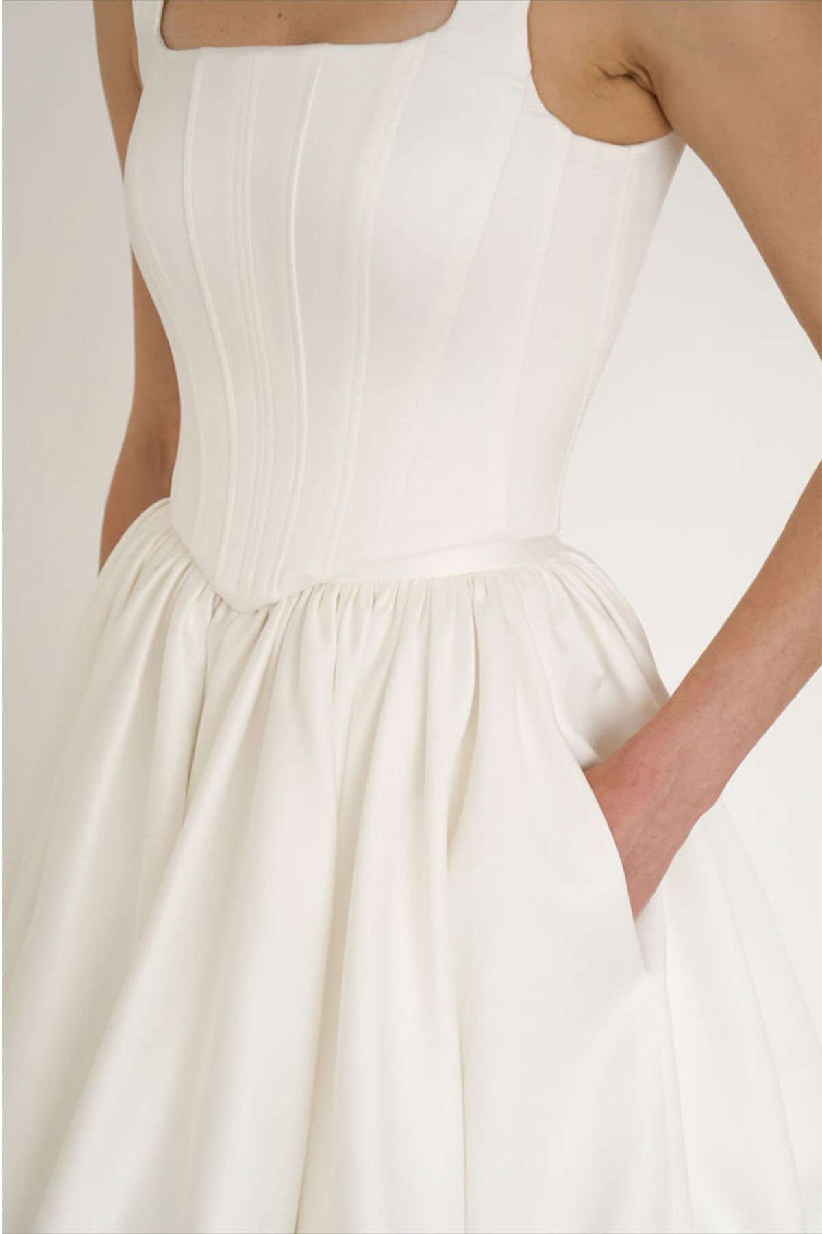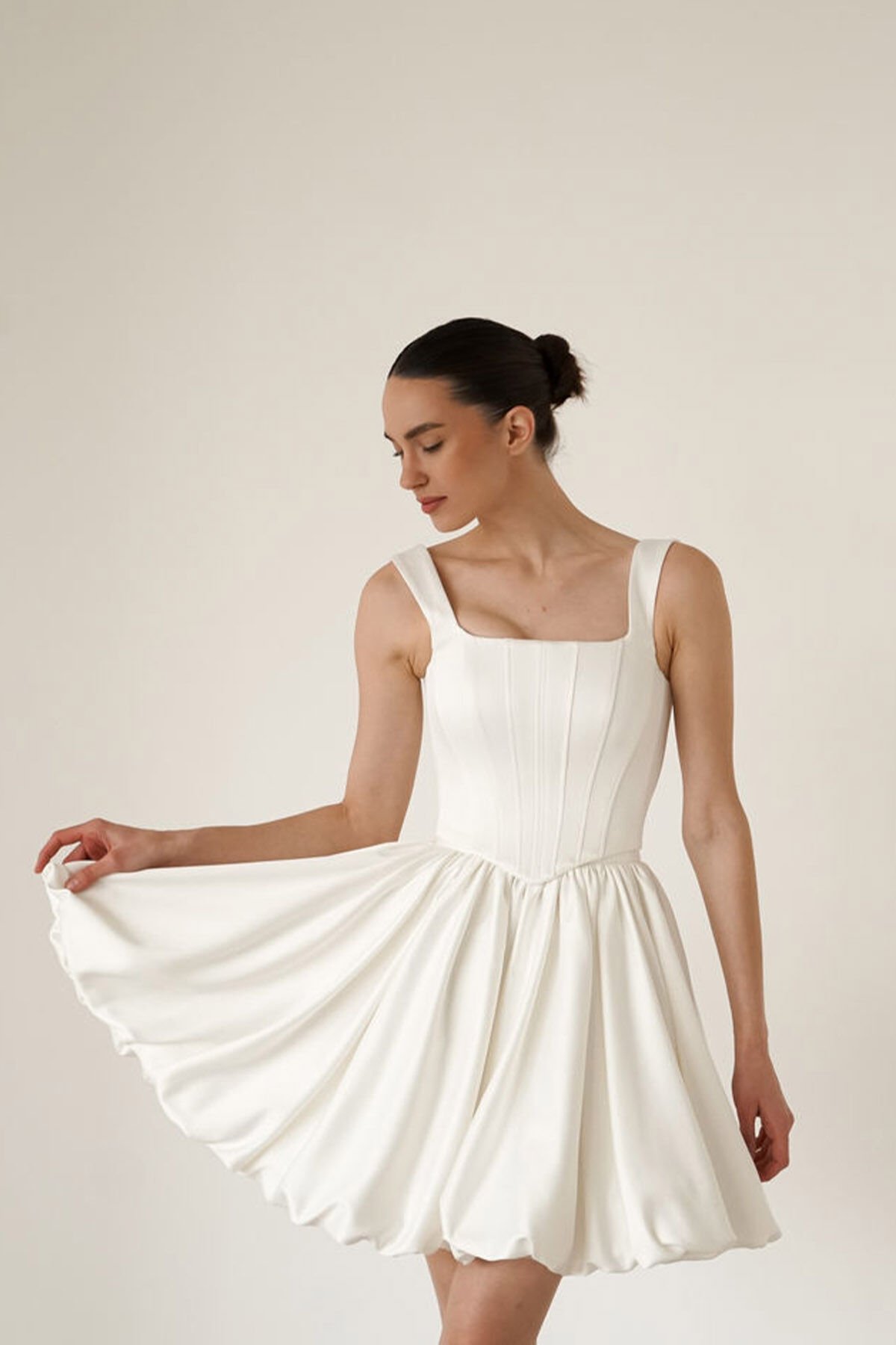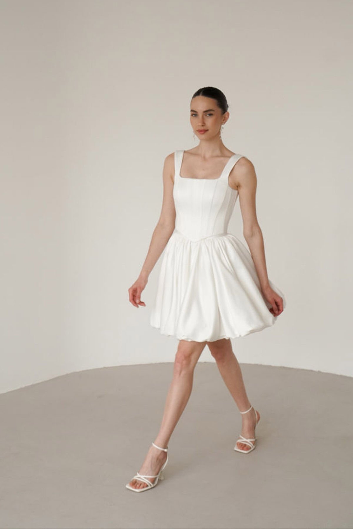 Kısa Saten Balon Kırık Beyaz Nikah Nişan After Off-White Kadın Mini Etek