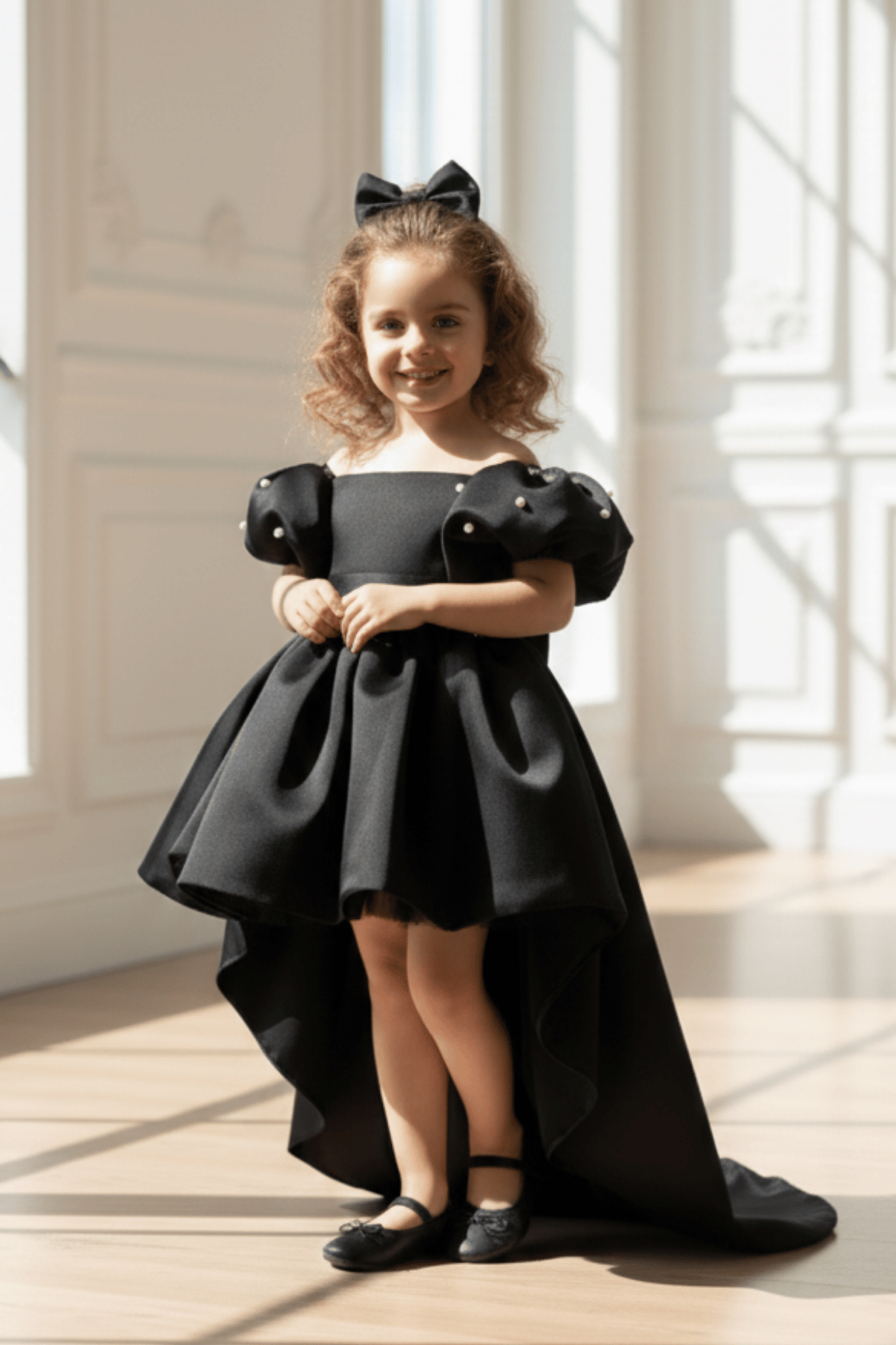 Dramatik Kuyruk Detayı: Elbisenin arka kısmındaki hafifçe uzayan kuyruk, miniğinizin yürüyüşüne zarafet katar.
