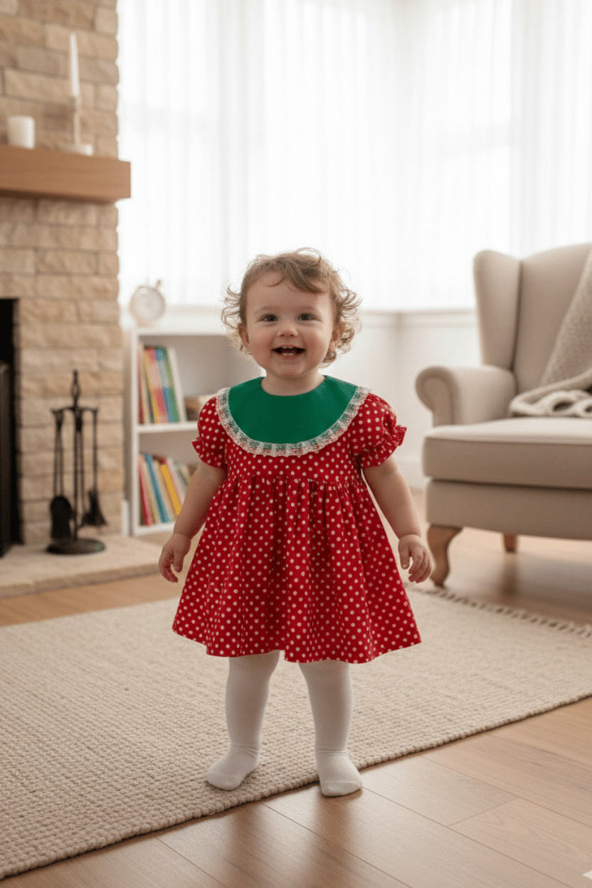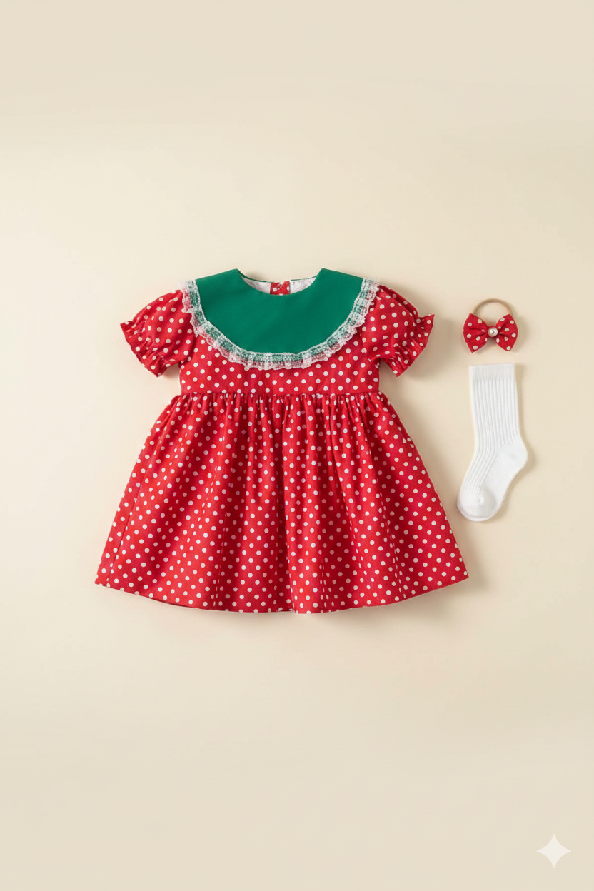 Yazın enerjisini ve saflığını yansıtan bu çilek puantiyeli elbise, miniklerin gardırobuna hem neşe hem de zarafet katıyor. Doğal dokusuyla öne çıkan bu tasarım, en özel kutlamalardan günlük şıklığa kadar her an için ideal.